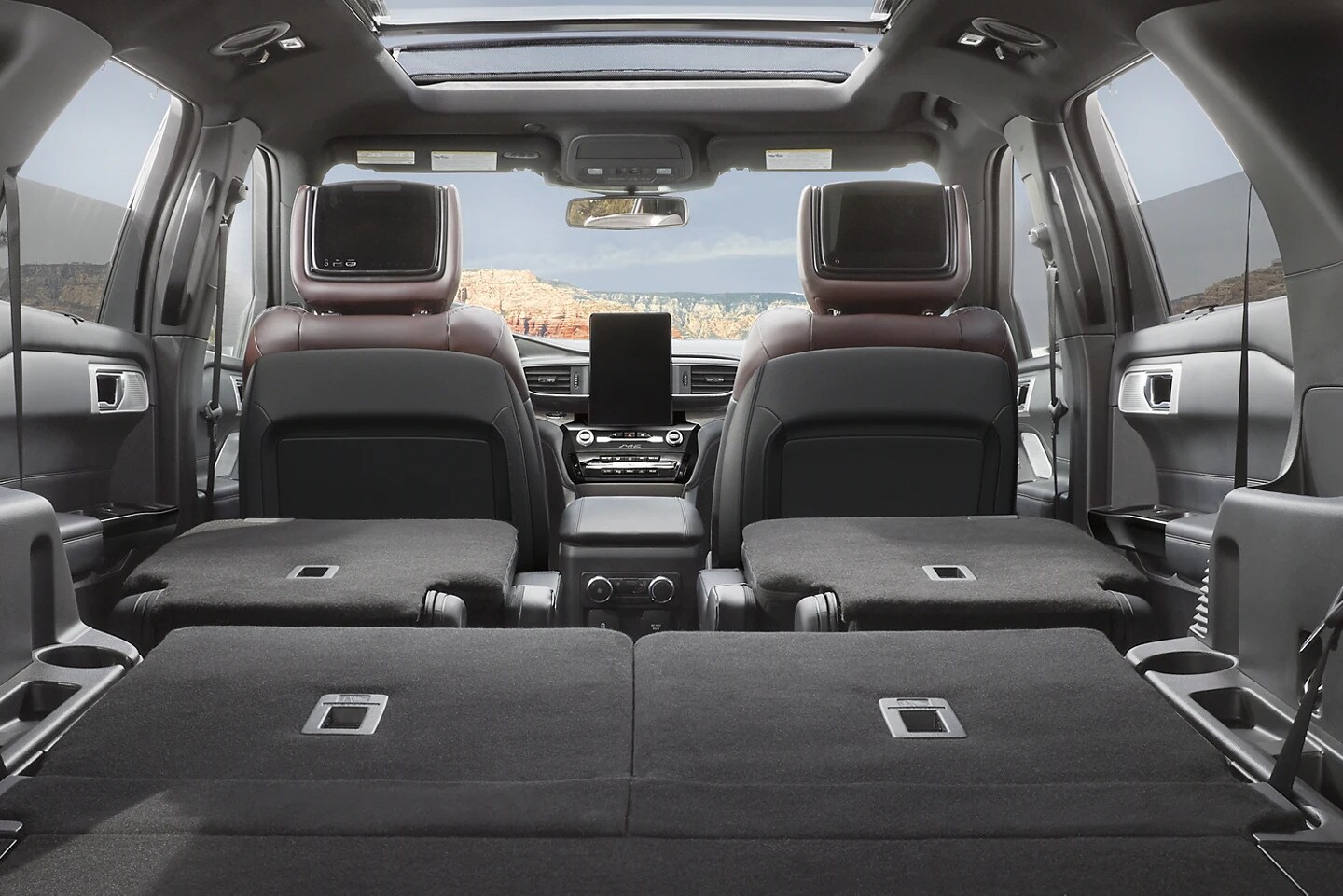The 2023 Ford Explorer® SUV provides 87.8 cubic feet of cargo space behind the first-row seats when the second- and third-row seats are folded flat. *