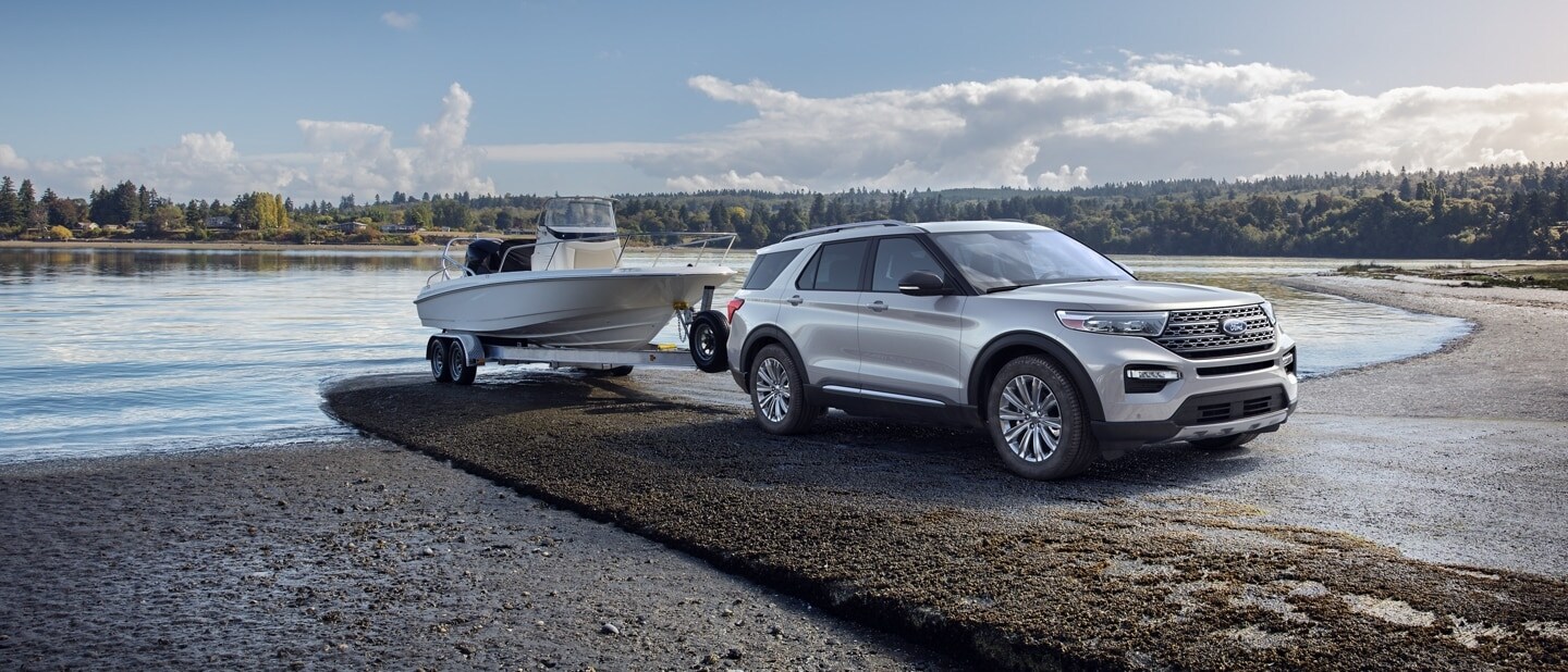 The 2023 Ford Explorer® SUV has the strength to tow up to 5,600 lbs.,* when equipped with the Class IV Trailer Tow Package and the tech to help make it easier with Tow/Haul mode on the standard Terrain Management System.™