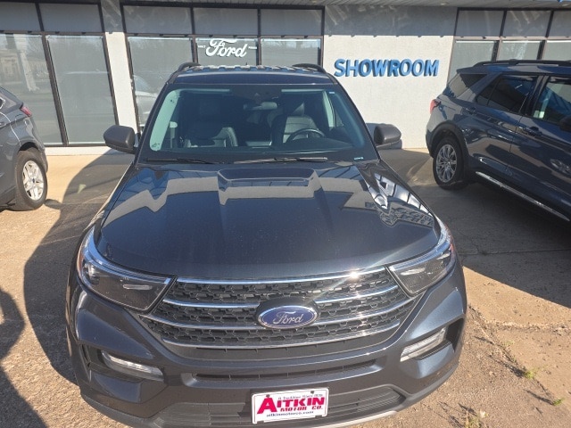 Aitkin Motor Company is honored to offer this handsome 2023 Ford Explorer XLT in Stone Blue Metallic, beautifully equipped with Class IV Trailer Tow Package, Equipment Group 202A (Acoustic-Laminated Front Side Windows, Heated ActiveX Captain's Chairs, Heated Steering Wheel, LED Fog Lamps, Remote Start System, and SecuriCode Keyless Entry Keypad), 3.58 Non-Limited-Slip Rear Axle Ratio, 3rd row seats: bench, 4-Wheel Disc Brakes, 4G LTE Wi-Fi Hotspot Credit, 6 Speakers, ABS brakes, Air Conditioning, Alloy wheels, AM/FM radio: SiriusXM, AM/FM Stereo, Auto High-beam Headlights, Automatic temperature control, Brake assist, Bumpers: body-color, Compass, Delay-off headlights, Driver door bin, Driver vanity mirror, Dual front impact airbags, Dual front side impact airbags, Electronic Stability Control, Emergency communication system: SYNC 3 911 Assist, Exterior Parking Camera Rear, FordPass Connect, Four wheel independent suspension, Front & Second Row Floor Liners (16A), Front anti-roll bar, Front Bucket Seats, Front Center Armrest, Front dual zone A/C, Front reading lights, Fully automatic headlights, Heated door mirrors, Heated front seats, Heated Unique Cloth Captain's Chairs, Illuminated entry, Knee airbag, Leather steering wheel, Low tire pressure warning, Occupant sensing airbag, Outside temperature display, Overhead airbag, Overhead console, Panic alarm, Passenger door bin, Passenger vanity mirror, Power door mirrors, Power driver seat, Power Liftgate, Power passenger seat, Power steering, Power windows, Rear air conditioning, Rear anti-roll bar, Rear Auxiliary Controls Credit, Rear reading lights, Rear window defroster, Rear window wiper, Remote keyless entry, Roof rack: rails only, Security system, Speed control, Speed-sensing steering, Speed-Sensitive Wipers, Split folding rear seat, Spoiler, Steering wheel mounted audio controls, SYNC 3 Communications & Entertainment System, SYNC 3/Apple CarPlay/Android Auto, Tachometer, Telescoping steering wheel, Tilt steering wheel, Traction control, Trip computer, Variably intermittent wipers, and Wheels: 18" 5-Spoke Silver-Painted Aluminum!