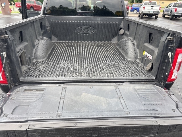 Aitkin Motor Company is delighted to offer this superb 2023 Ford F-150 Lariat in Agate Black Metallic, beautifully equipped with Bed Utility Package (BoxLink, LED Box Lighting, Power Tailgate, and Tailgate Step w/Tailgate Work Surface), Equipment Group 502A High (2nd Row Heated Seats, LED Projector w/Dynamic Bending Headlamps, Power Tilt/Telescoping Steering Column w/Memory, Rain-Sensing Wipers, Wheels: 20" Chrome-Like PVD, and Wireless Charging Pad), Ford Co-Pilot360 Assist 2.0 (Connected Built-In Navigation, Evasive Steering Assist, Intelligent Adaptive Cruise Control w/Stop & Go, Intersection Assist, and Speed Sign Recognition), GVWR: 6,600 lbs Payload Package, 3.55 Axle Ratio, 4-Wheel Disc Brakes, 8 Speakers, ABS brakes, Adjustable pedals, Air Conditioning, Alloy wheels, AM/FM radio: SiriusXM with 360L, Auto High-beam Headlights, Auto-dimming door mirrors, Auto-dimming Rear-View mirror, Automatic temperature control, Brake assist, Bumpers: chrome, Chrome wheels, Class IV Trailer Hitch Receiver, Compass, Delay-off headlights, Driver door bin, Driver vanity mirror, Dual front impact airbags, Dual front side impact airbags, Electronic Stability Control, Emergency communication system: SYNC 4 911 Assist, Exterior Parking Camera Rear, Front anti-roll bar, Front Bucket Seats, Front Center Armrest, Front dual zone A/C, Front fog lights, Front reading lights, Front wheel independent suspension, Fully automatic headlights, Garage door transmitter, Heated door mirrors, Heated front seats, Heated steering wheel, Illuminated entry, Inclination/Intrusion Sensor Removal, Interior Work Surface, LED Sideview Mirror Spotlights, Low tire pressure warning, Memory seat, Navigation system: Connected Navigation, Occupant sensing airbag, Outside temperature display, Overhead airbag, Overhead console, Panic alarm, Passenger door bin, Passenger vanity mirror, Pedal memory, Power door mirrors, Power driver seat, Power passenger seat, Power steering, Power windows, Radio data system, Radio: B&O Sound System by Bang & Olufsen, Rear reading lights, Rear seat center armrest, Rear step bumper, Rear window defroster, Remote keyless entry, Security system, Speed control, Speed-sensing steering, Split folding rear seat, Steering Wheel Heat Removal (DISC), Steering wheel mounted audio controls, SYNC 4 w/Enhanced Voice Recognition, Tachometer, Telescoping steering wheel, Tilt steering wheel, Traction control, Tray Style Floor Liner (47W), Trip computer, Turn signal indicator mirrors, Variably intermittent wipers, Ventilated front seats, Voltmeter, and Wheels: 18" Chrome-Like PVD!
