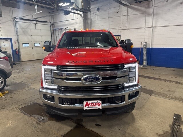 Aitkin Motor Company is honored to offer this attractive-looking 2019 Ford F-350SD Lariat in Race Red, beautifully equipped with 5th Wheel/Gooseneck Hitch Prep Package, Chrome Package (6" Angular Chrome Step Bars, Body-Color Door Handles w/Chrome Insert, Chrome Exhaust Tip, Unique Chrome Mirror Caps, and Wheels: 18" Chrome PVD Aluminum), FX4 Off-Road Package (Hill Descent Control, Off-Road Specifically Tuned Shock Absorbers, and Unique FX4 Off-Road Box Decal), GVWR: 11,300 lb Payload Package, Lariat Ultimate Package (Ambient Lighting - Fixed Color, Automatic High Beam, Easy Entry®/Exit Memory Driver's Seat Feature, Intelligent Access w/Push-Button Start, LED Box Lighting, Memory Power-Adjustable Pedals, Power Heated/Cooled Driver Seat w/Memory, Power Heated/Cooled Passenger Seat, Power Telescoping/Tilt Steering Wheel/Column, PowerScope Trailer Tow Mirrors w/Memory, Remote Start System, Remote Tailgate Release, Tailgate Step & Handle, and Voice-Activated Navigation), Order Code 618A, Snow Plow Prep Package, 10 Speakers, 110V/400W Outlet, 4-Wheel Disc Brakes, ABS brakes, Adjustable pedals, Air Conditioning, Alloy wheels, AM/FM radio: SiriusXM, AppLink/Apple CarPlay and Android Auto, Auto-dimming Rear-View mirror, Automatic temperature control, BLIS Blind Spot Information System, Brake assist, Bumpers: chrome, Compass, Delay-off headlights, Driver door bin, Driver vanity mirror, Dual Extra Heavy-Duty Alternators (Total 377-Amps), Dual front impact airbags, Dual front side impact airbags, Electronic Stability Control, Emergency communication system: SYNC 3 911 Assist, Engine Block Heater, Exterior Parking Camera Rear, Flow-Through Console, Front anti-roll bar, Front Bucket Seats, Front Center Armrest, Front dual zone A/C, Front fog lights, Front Leather Seating Surfaces 40/Console/40, Front reading lights, Fully automatic headlights, Heated door mirrors, Heated Rear Seats, Illuminated entry, Leather steering wheel, LED Roof Clearance Lights, Low tire pressure warning, Outside temperature display, Overhead airbag, Overhead console, Panic alarm, Passenger door bin, Passenger vanity mirror, Power door mirrors, Power driver seat, Power passenger seat, Power steering, Power windows, Quad Beam LED Headlamps & LED Taillamps, Radio data system, Radio: B&O Sound System by Bang & Olufsen, Rapid-Heat Supplemental Cab Heater, Rear CHMSL Camera, Rear Parking Sensors, Rear reading lights, Rear seat center armrest, Rear step bumper, Rear window defroster, Remote keyless entry, Security system, SiriusXM Radio, Speed control, Split folding rear seat, Steering wheel mounted audio controls, SYNC 3 Communications & Entertainment System, Tachometer, Telescoping steering wheel, Tilt steering wheel, Traction control, Trip computer, Turn signal indicator mirrors, Twin Panel Power Moonroof, Ultimate Trailer Tow Camera System, Universal Garage Door Opener (UGDO), Upfitter Switches (6), Variably intermittent wipers, and Wheels: 18" Bright Machined Cast Aluminum!