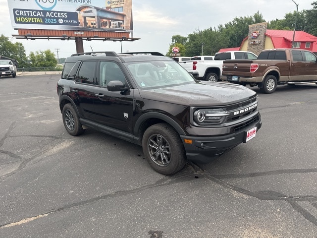 Aitkin Motor Company is excited to offer this beautiful-looking 2021 Ford Bronco Sport Big Bend in Brown Metallic, beautifully equipped with Big Bend Package (DISC) (Heated Front Bucket Seats, Leather-Wrapped Steering Wheel, Power Moonroof, Reverse Sensing System, and Wireless Charging Pad), Equipment Group 200A, 3.80 Axle Ratio, 4-Wheel Disc Brakes, 6 Speakers, ABS brakes, Air Conditioning, Alloy wheels, AM/FM radio: SiriusXM, AM/FM Stereo, Auto High-beam Headlights, Automatic temperature control, Brake assist, Compass, Delay-off headlights, Driver door bin, Driver vanity mirror, Dual front impact airbags, Dual front side impact airbags, Electronic Stability Control, Emergency communication system: SYNC 3 911 Assist, Engine Block Heater, Exterior Parking Camera Rear, Four wheel independent suspension, Front anti-roll bar, Front Bucket Seats, Front Center Armrest, Front fog lights, Front License Plate Bracket, Front reading lights, Fully automatic headlights, Heated door mirrors, Illuminated entry, Knee airbag, Low tire pressure warning, Occupant sensing airbag, Outside temperature display, Overhead airbag, Overhead console, Panic alarm, Passenger door bin, Passenger vanity mirror, Power door mirrors, Power steering, Power windows, Radio data system, Rear anti-roll bar, Rear reading lights, Rear seat center armrest, Rear window defroster, Rear window wiper, Remote keyless entry, Roof rack: rails only, Security system, SiriusXM Radio, Speed control, Speed-sensing steering, Speed-Sensitive Wipers, Split folding rear seat, Steering wheel mounted audio controls, SYNC 3 Communications & Entertainment System, SYNC 3/Apple CarPlay/Android Auto, Tachometer, Telescoping steering wheel, Tilt steering wheel, Traction control, Trip computer, Unique Cloth Front Bucket Seats, Variably intermittent wipers, and Wheels: 17" Carbonized Gray-Painted Aluminum!