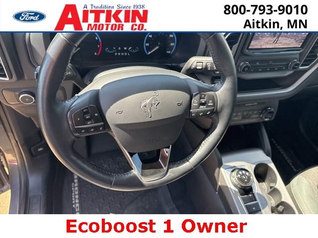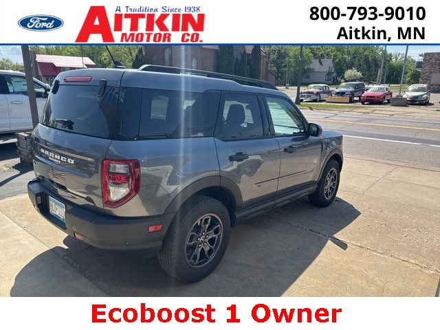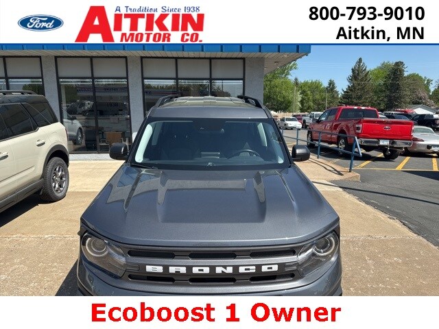 Aitkin Motor Company is very proud to offer this charming 2021 Ford Bronco Sport Big Bend in Gray, beautifully equipped with Big Bend Package (96B) (Heated Front Bucket Seats, Leather-Wrapped Steering Wheel, Reverse Sensing System, and Wireless Charging Pad), Equipment Group 200A, 3.80 Axle Ratio, 4-Wheel Disc Brakes, 6 Speakers, ABS brakes, Air Conditioning, Alloy wheels, AM/FM radio: SiriusXM, AM/FM Stereo, Auto High-beam Headlights, Automatic temperature control, Brake assist, Compass, Delay-off headlights, Driver door bin, Driver vanity mirror, Dual front impact airbags, Dual front side impact airbags, Electronic Stability Control, Emergency communication system: SYNC 3 911 Assist, Engine Block Heater, Exterior Parking Camera Rear, Four wheel independent suspension, Front & Rear Floor Liners, Front anti-roll bar, Front Bucket Seats, Front Center Armrest, Front fog lights, Front License Plate Bracket, Front reading lights, Fully automatic headlights, Heated door mirrors, Illuminated entry, Knee airbag, Low tire pressure warning, Occupant sensing airbag, Outside temperature display, Overhead airbag, Overhead console, Panic alarm, Passenger door bin, Passenger vanity mirror, Power door mirrors, Power steering, Power windows, Radio data system, Rear anti-roll bar, Rear reading lights, Rear seat center armrest, Rear window defroster, Rear window wiper, Remote keyless entry, Roof rack: rails only, Security system, SiriusXM Radio, Speed control, Speed-sensing steering, Speed-Sensitive Wipers, Split folding rear seat, Steering wheel mounted audio controls, SYNC 3 Communications & Entertainment System, SYNC 3/Apple CarPlay/Android Auto, Tachometer, Telescoping steering wheel, Tilt steering wheel, Traction control, Trip computer, Unique Cloth Front Bucket Seats, Variably intermittent wipers, and Wheels: 17" Carbonized Gray-Painted Aluminum!