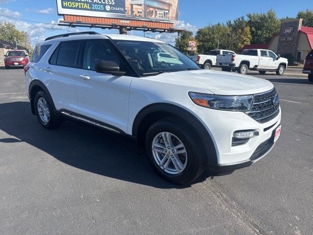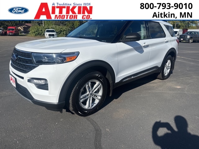 Aitkin Motor Company is delighted to offer this superb 2021 Ford Explorer XLT in Oxford White, beautifully equipped with Class III Trailer Tow Package (SelectShift Capability w/Paddle Shifters), Equipment Group 202A (Acoustic-Laminated Front Side Windows, ActiveX Captain's Chairs, Heated Steering Wheel, LED Fog Lamps, and Remote Start System), Ford Co-Pilot360 Assist+ (Evasive Steering Assist, Intelligent Adaptive Cruise Control, Speed Sign Recognition, and Voice-Activated Touchscreen Navigation System), 1st Row Heated Seats, 3.58 Non-Limited-Slip Rear Axle Ratio, 3rd row seats: bench, 4-Wheel Disc Brakes, 6 Speakers, ABS brakes, Air Conditioning, Alloy wheels, AM/FM radio: SiriusXM, AM/FM Stereo, Auto High-beam Headlights, Automatic temperature control, Brake assist, Bumpers: body-color, Compass, Delay-off headlights, Driver door bin, Driver vanity mirror, Dual front impact airbags, Dual front side impact airbags, Electronic Stability Control, Emergency communication system: SYNC 3 911 Assist, Engine Block Heater, Exterior Parking Camera Rear, FordPass Connect, Four wheel independent suspension, Front & Second Row Floor Liners (16B), Front anti-roll bar, Front Bucket Seats, Front Center Armrest, Front dual zone A/C, Front License Plate Bracket, Front reading lights, Fully automatic headlights, Heated door mirrors, Heated front seats, Illuminated entry, Knee airbag, Leather steering wheel, Low tire pressure warning, Occupant sensing airbag, Outside temperature display, Overhead airbag, Overhead console, Panic alarm, Passenger door bin, Passenger vanity mirror, Power door mirrors, Power driver seat, Power Liftgate, Power passenger seat, Power steering, Power windows, Rear air conditioning, Rear anti-roll bar, Rear reading lights, Rear window defroster, Rear window wiper, Remote keyless entry, Roof rack: rails only, Security system, Speed control, Speed-sensing steering, Speed-Sensitive Wipers, Split folding rear seat, Spoiler, Steering wheel mounted audio controls, SYNC 3 Communications & Entertainment System, SYNC 3/Apple CarPlay/Android Auto, Tachometer, Telescoping steering wheel, Tilt steering wheel, Traction control, Trip computer, Unique Cloth Captain's Chairs, Variably intermittent wipers, and Wheels: 18" 5-Spoke Sparkle Silver-Painted Alum!