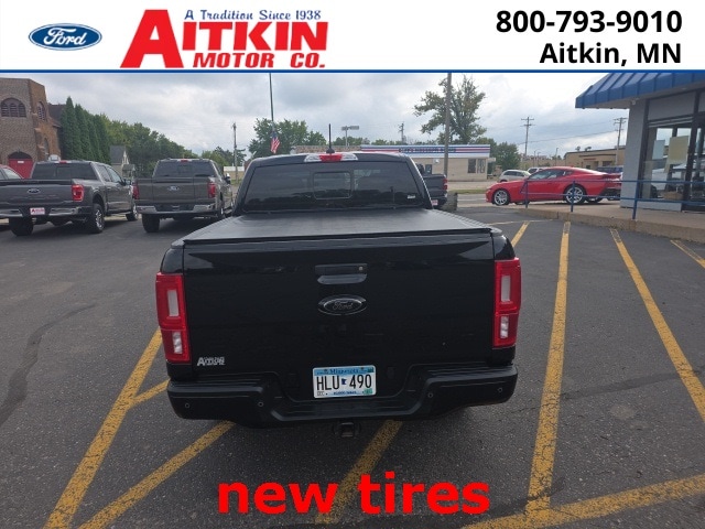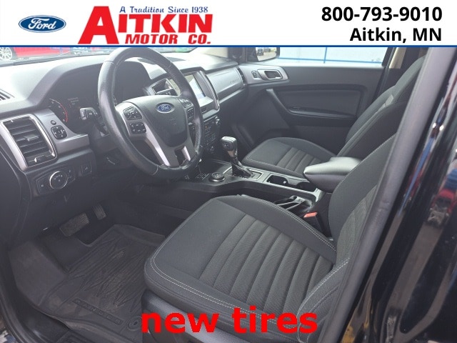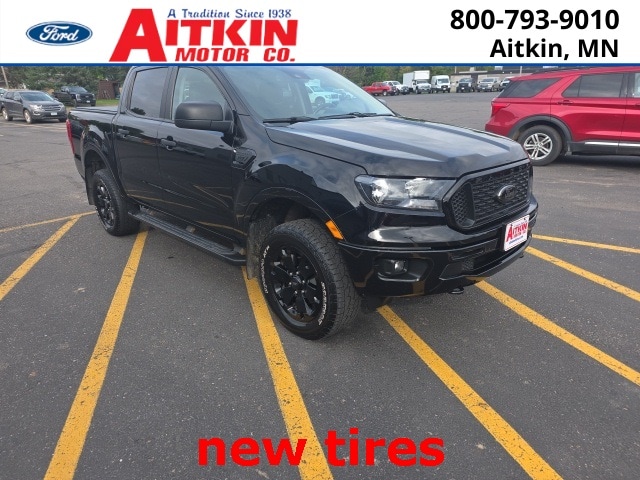 Aitkin Motor Company is very proud to offer this stunning 2021 Ford Ranger XLT in Shadow Black, beautifully equipped with Black Appearance Package (5" Rectangular Black Running Boards, Black Grille w/Black Surround, Body-Color Front & Rear Bumpers, Dark Box Decal, Tough Bed Spray-In Bedliner, and Wheels: 18" Black Painted Aluminum), Equipment Group 302A High (110V AC Power Outlet, Auto-Dimming Rear-View Mirror, Heated Front Seats, Leather-Wrapped Shifter, Leather-Wrapped Steering Wheel, Manual-Sliding Rear-Window, Power-Folding Sideview Mirrors w/Power Glass, Remote Start, and Reverse Sensing System), FX4 Off-Road Package (Electronic-Locking Rear Differential, FX4 Off-Road Box Decal, Off-Road Screen in Cluster, Off-Road Tuned Suspension, and Terrain Management System), Sport Appearance Package (Black Grille w/Magnetic Surround, Black Wheel-Lip Molding, Magnetic Front & Rear Bumper, Sport Box Decal, and Wheels: 17" Magnetic Painted Aluminum Sport), Trailer Tow Package (Class IV Trailer Hitch Receiver), 3.73 Axle Ratio, 4-Wheel Disc Brakes, 6 Speakers, ABS brakes, Air Conditioning, Alloy wheels, AM/FM radio: SiriusXM, AM/FM Stereo, Auto High-beam Headlights, Automatic temperature control, Brake assist, Bumpers: body-color, Compass, Delay-off headlights, Driver door bin, Dual front impact airbags, Dual front side impact airbags, Electronic Stability Control, Emergency communication system: SYNC 3 911 Assist, Engine Block Heater, Exterior Parking Camera Rear, Front anti-roll bar, Front Bucket Seats, Front Center Armrest, Front dual zone A/C, Front fog lights, Front License Plate Bracket, Front Premium Cloth Bucket Seats, Front reading lights, Front wheel independent suspension, Fully automatic headlights, Illuminated entry, Low tire pressure warning, Occupant sensing airbag, Outside temperature display, Overhead airbag, Overhead console, Panic alarm, Passenger door bin, Power door mirrors, Power steering, Power windows, Rear reading lights, Rear seat center armrest, Rear step bumper, Rear window defroster, Remote keyless entry, Security system, SiriusXM Satellite Radio, Speed control, Speed-sensing steering, Steering wheel mounted audio controls, SYNC 3, SYNC 3/Apple CarPlay/Android Auto, Telescoping steering wheel, Tilt steering wheel, Traction control, Trip computer, Variably intermittent wipers, Voltmeter, and Wheels: 17" Silver-Painted Aluminum!