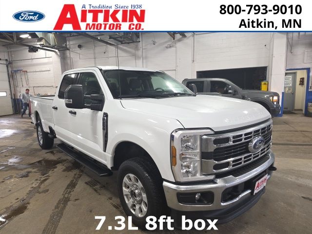 Aitkin Motor Company is very proud to offer this handsome 2024 Ford F-250SD XLT in Oxford White, beautifully equipped with GVWR: 10,000 lb Payload Package, Order Code 603A, 3.73 Axle Ratio, 4-Wheel Disc Brakes, 6 Speakers, ABS brakes, Air Conditioning, Alloy wheels, AM/FM radio, AM/FM Stereo w/MP3 Player, Auto High-beam Headlights, Brake assist, Bumpers: chrome, Cloth 40/20/40 Split Bench Seat, Compass, Delay-off headlights, Driver door bin, Driver vanity mirror, Dual front impact airbags, Dual front side impact airbags, Electronic Stability Control, Emergency communication system: SYNC 4 911 Assist, Exterior Parking Camera Rear, Front anti-roll bar, Front Center Armrest w/Storage, Front fog lights, Front License Plate Bracket, Front reading lights, Fully automatic headlights, Heated door mirrors, Illuminated entry, Low tire pressure warning, Outside temperature display, Overhead airbag, Overhead console, Panic alarm, Passenger door bin, Passenger vanity mirror, Platform Running Boards, Power door mirrors, Power driver seat, Power steering, Power windows, Privacy Glass, Rear reading lights, Rear step bumper, Remote keyless entry, Speed control, Split folding rear seat, Steering wheel mounted audio controls, SYNC 4, Tachometer, Telescoping steering wheel, Tilt steering wheel, Traction control, Trip computer, Turn signal indicator mirrors, Variably intermittent wipers, and Wheels: 18" Sparkle Silver Painted Cast Aluminum!